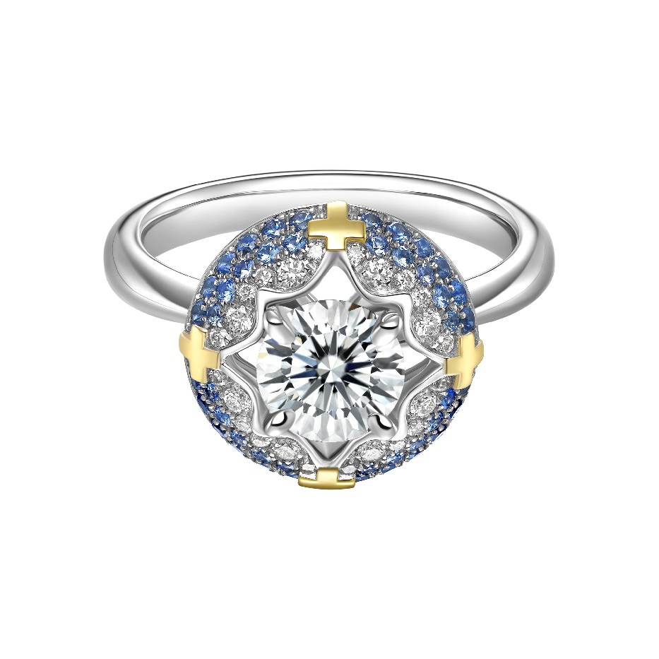 爱琴海18K分色金蓝宝石外圈